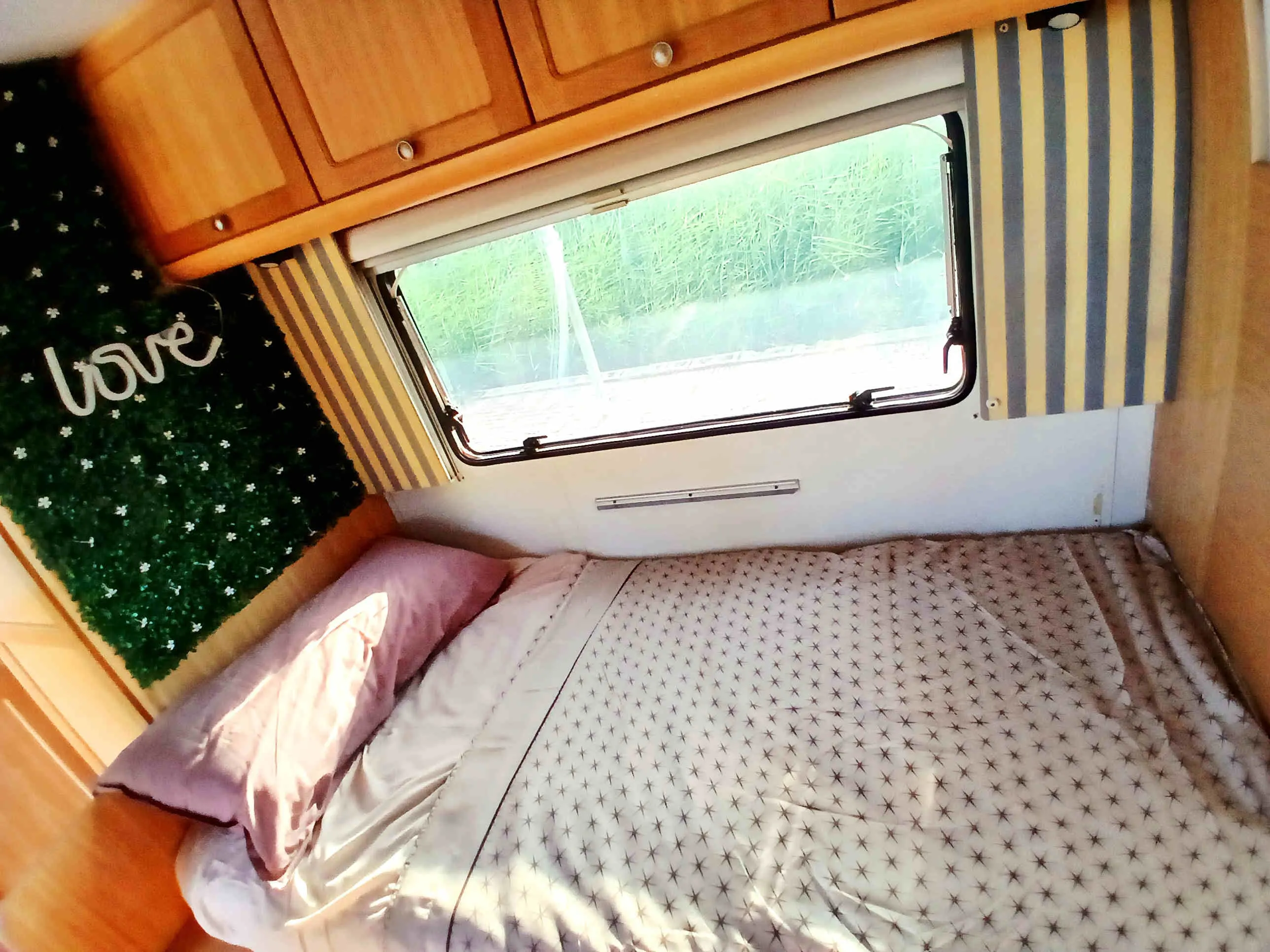Margarita – with awning, sleeps 4 Renting a caravan in a campsite is one of the most comfortable and secure ways to enjoy both caravanning and camping, while taking advantage of all the great amenities campsites have to offer. Our caravan is ideal for short getaways or long stays. Enjoy a cosy and tastefully decorated space. Two single beds: 80cm x 190cm One double convertible bed: 120cm x 180cm Table with built-in bench seating Portable air conditioning Outdoor kitchen Enclosed awning, outdoor table and chairs. Cheerful, well-thought-out decor We deliver and set it up at the campsite of your choice. Rental includes towels and kitchenware. We are flexible with arrival and departure times. Please check availability.