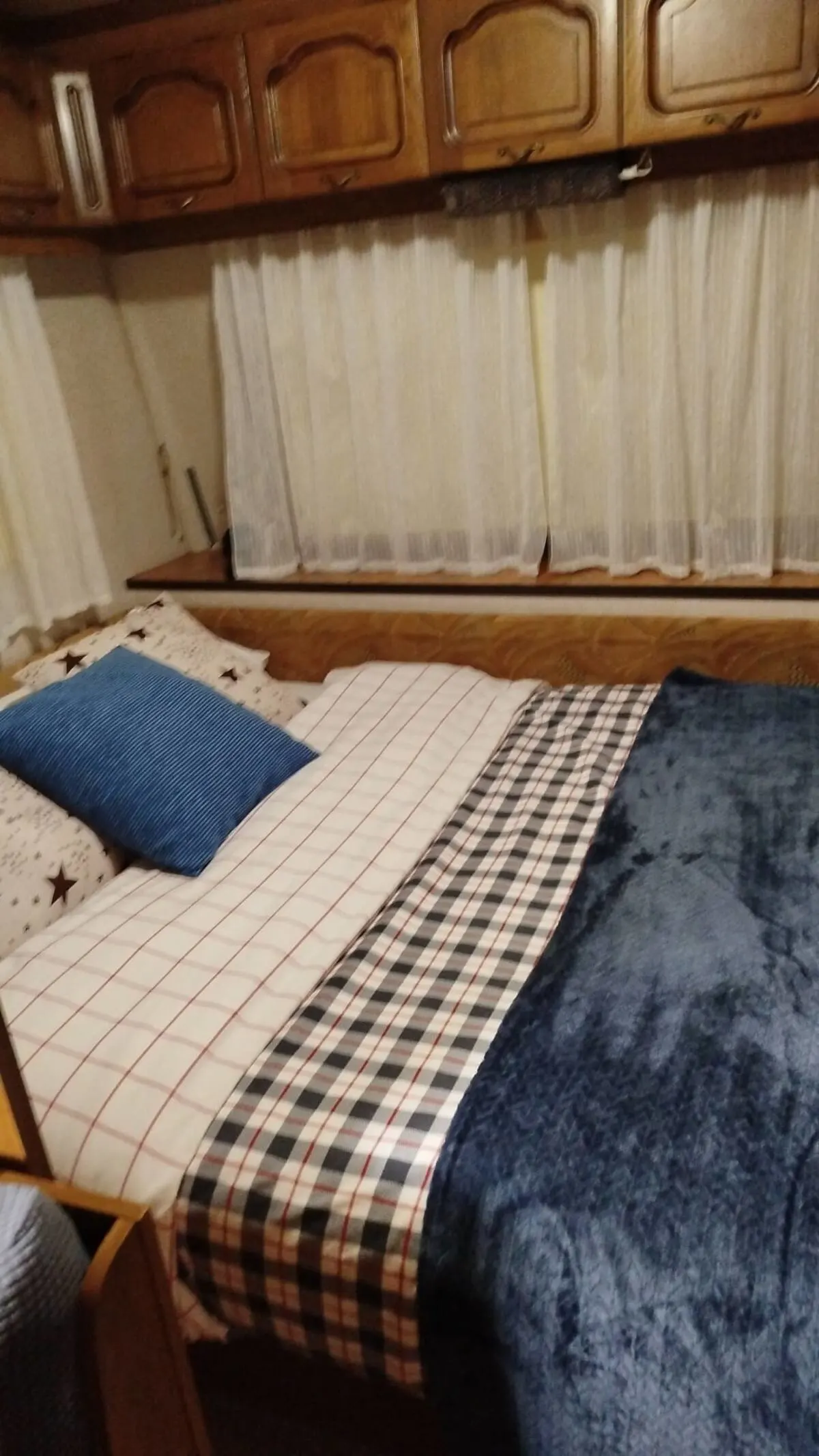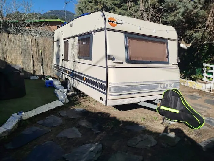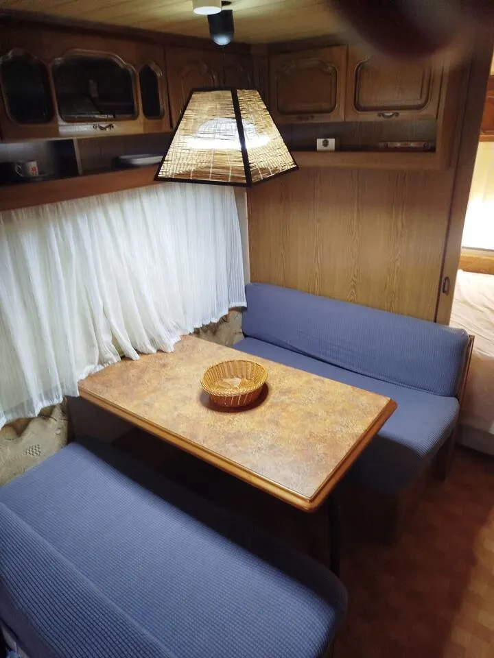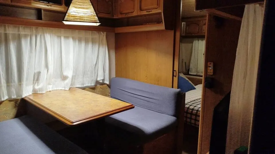 Alquiler de caravana Burstner para 4 personas, es cómoda, Servicios y comodidades: Cocina equipada: Fogones de gas, fregadero, utensilios esenciales de cocina. Frigorífico mini y congelador. Cafetera, vajilla y cubertería. Cama doble 135 Comedor convertible en cama 120 Baño químico, con lavabo y ducha Calefacción de gas Ducha con agua caliente Armario, TV con Fire stick de Amazon, no es por cable. Juegos de mesa, libros. Bateria Bluetti AC50B 700w Con 3 plazas, cama de 135 y el comedor convertible a una cama de 120. La habitación cuenta con cama matrimonio, cajones para ropa o accesorios, mesa de noche, puerta corrediza para mayor privacidad. Tiene comedor convertible en cama de 120 cm. Cocina con todo lo necesario para una estancia a gusto. Baño de WC químico, ducha con agua caliente. Armario, TV con Fire stick de Amazon, no es por cable. Juegos de mesa, libros. Aunque nos encantan los animales por espacio no es posible admitir mascotas.
