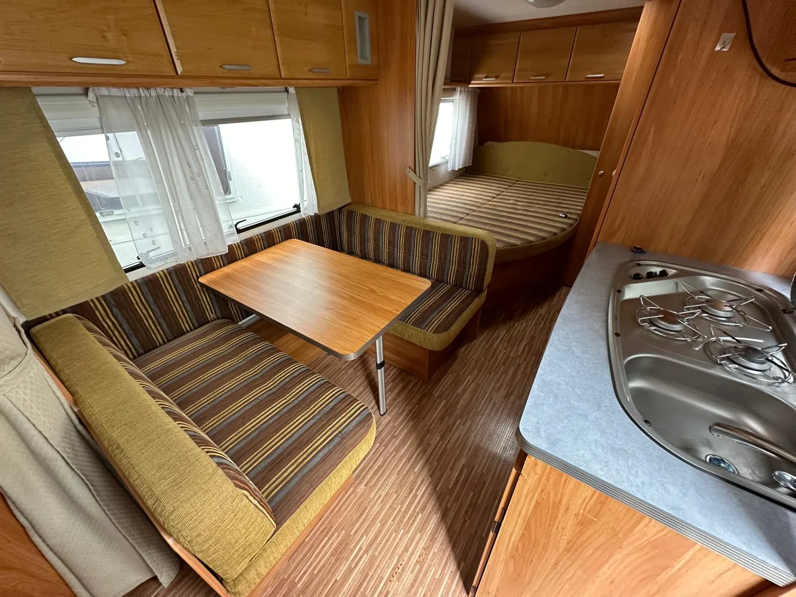 Se alquila caravana de 3 ambientes con toldo, suelo, mesa y sillas, cocina y nevera de exterior, menaje de cocina, utensilios de limpieza y cable conexión 220v.