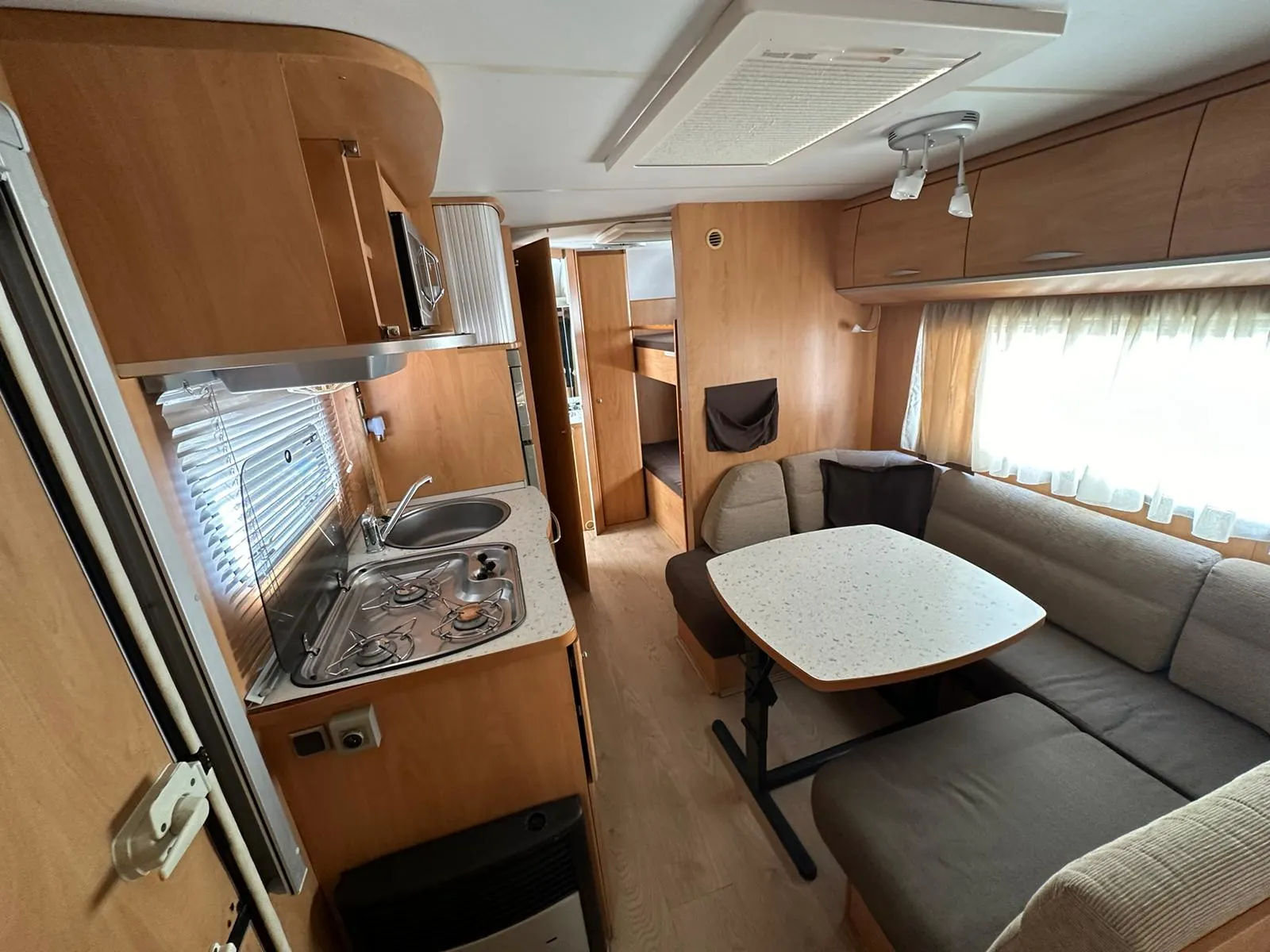 Se alquila caravana de 3 ambientes con toldo, suelo, mesa y sillas, cocina y nevera de exterior, menaje de cocina, utensilios de limpieza y cable conexión 220v.