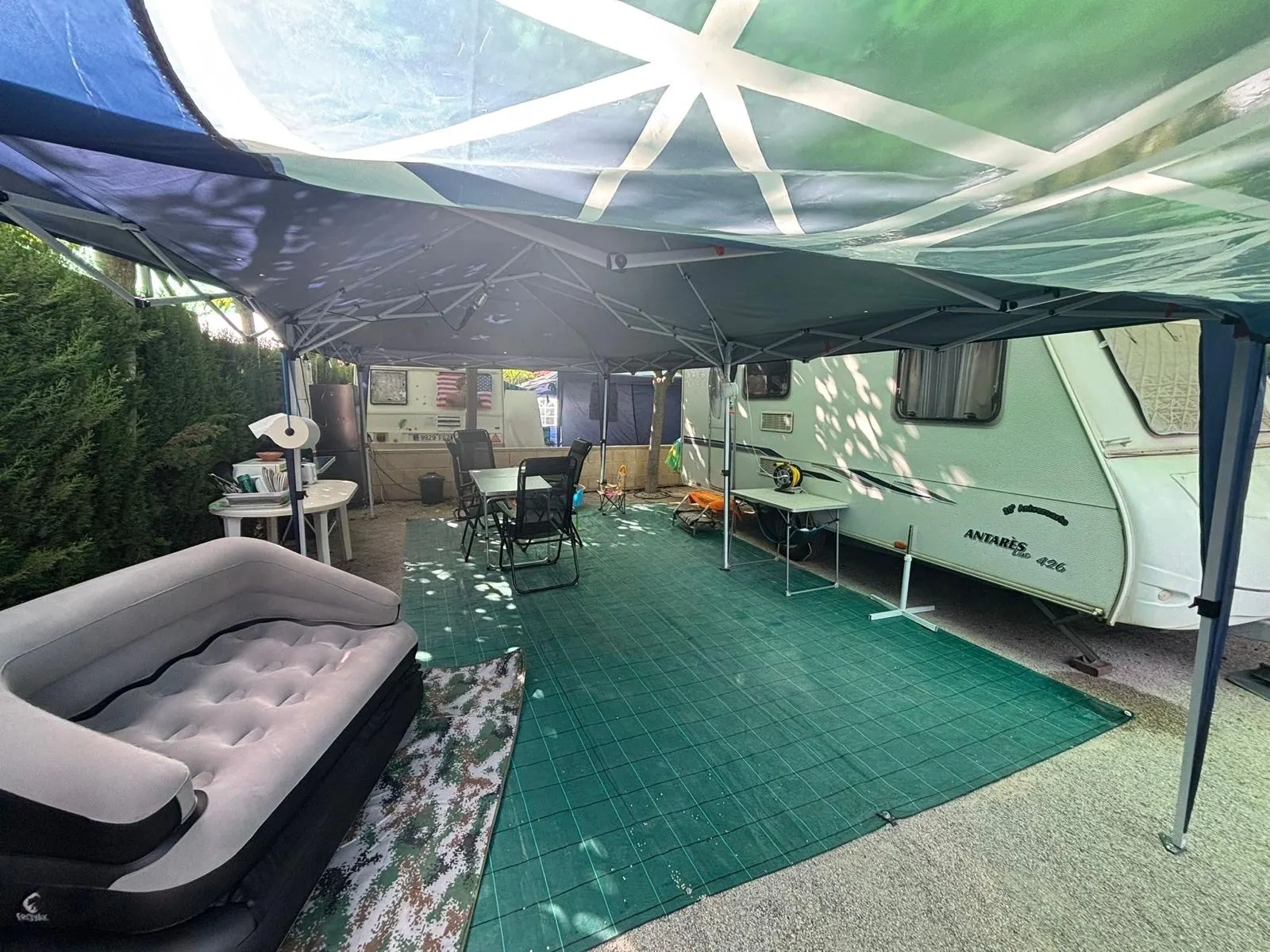 ¡Caravana de 3 ambientes! Alquila nuestra caravana y la llevamos al camping de Alicante que elijas y disfruta de unas vacaciones inolvidables. Caravana Caravelair Antares Luxe 426, capacidad de hasta 6 personas. Perfectamente equipada para ofrecerte una experiencia de camping única. Nos encargamos de todo el montaje y la instalación, para que solo tengas que preocuparte de disfrutar. Dos frigoríficos, uno en el interior de la caravana y otro en el exterior. Caravana con aire acondicionado. Alquiler mínimo 6 noches. Somos flexibles en las horas de llegada y salida. Consultar disponibilidad.