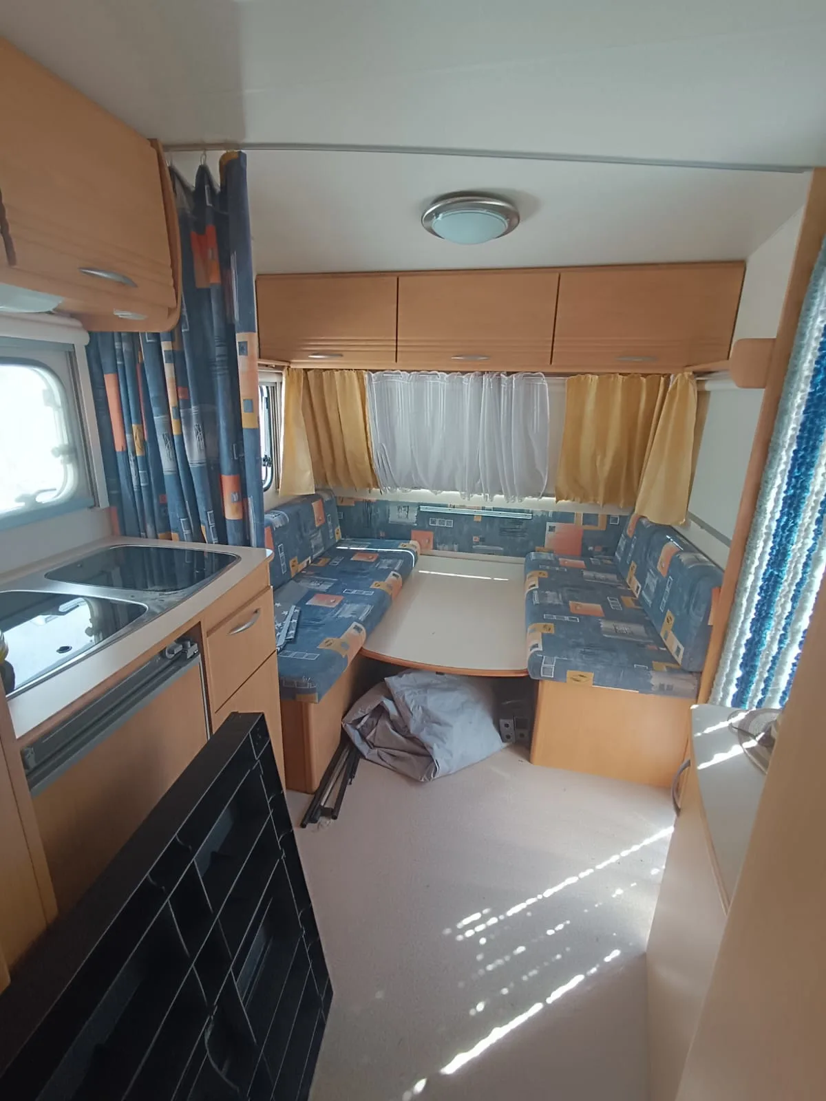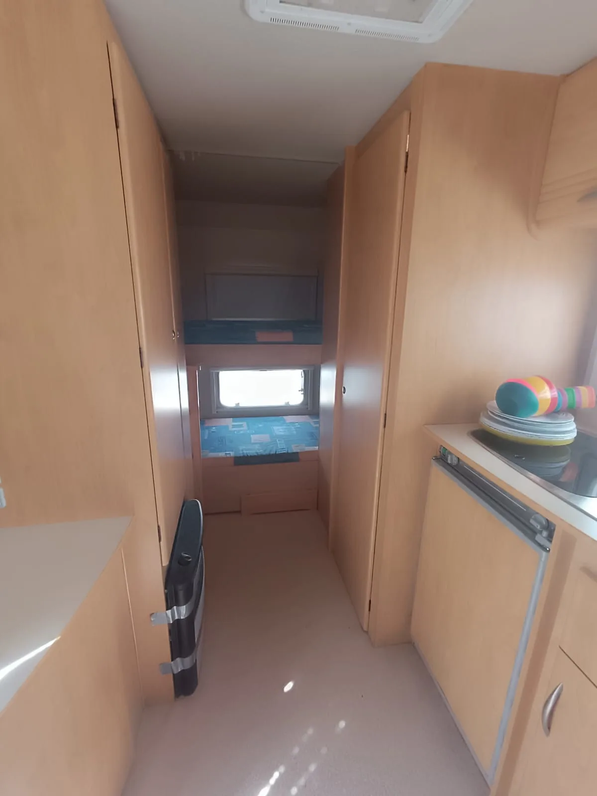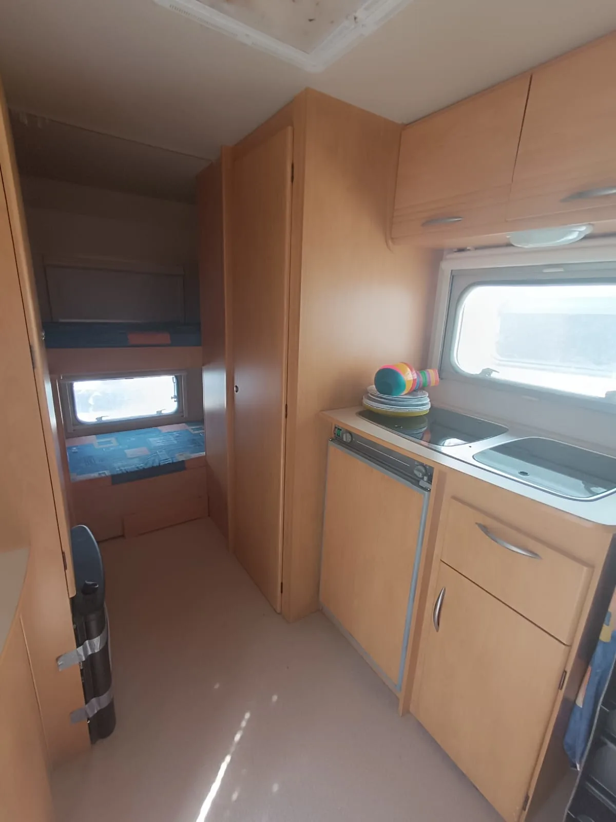 Se alquila caravana de 4 plazas con toldo, suelo, mesa y sillas, cocina y nevera de exterior, menaje de cocina, utensilios de limpieza y cable conexión 220v.