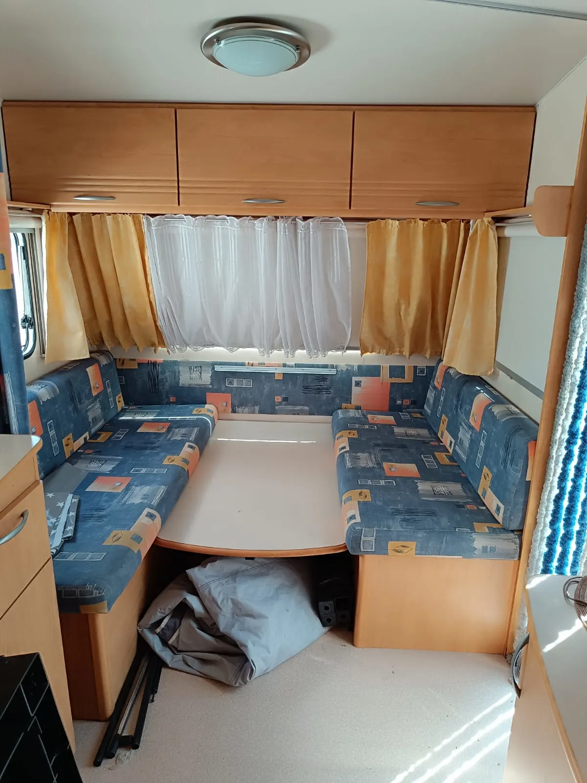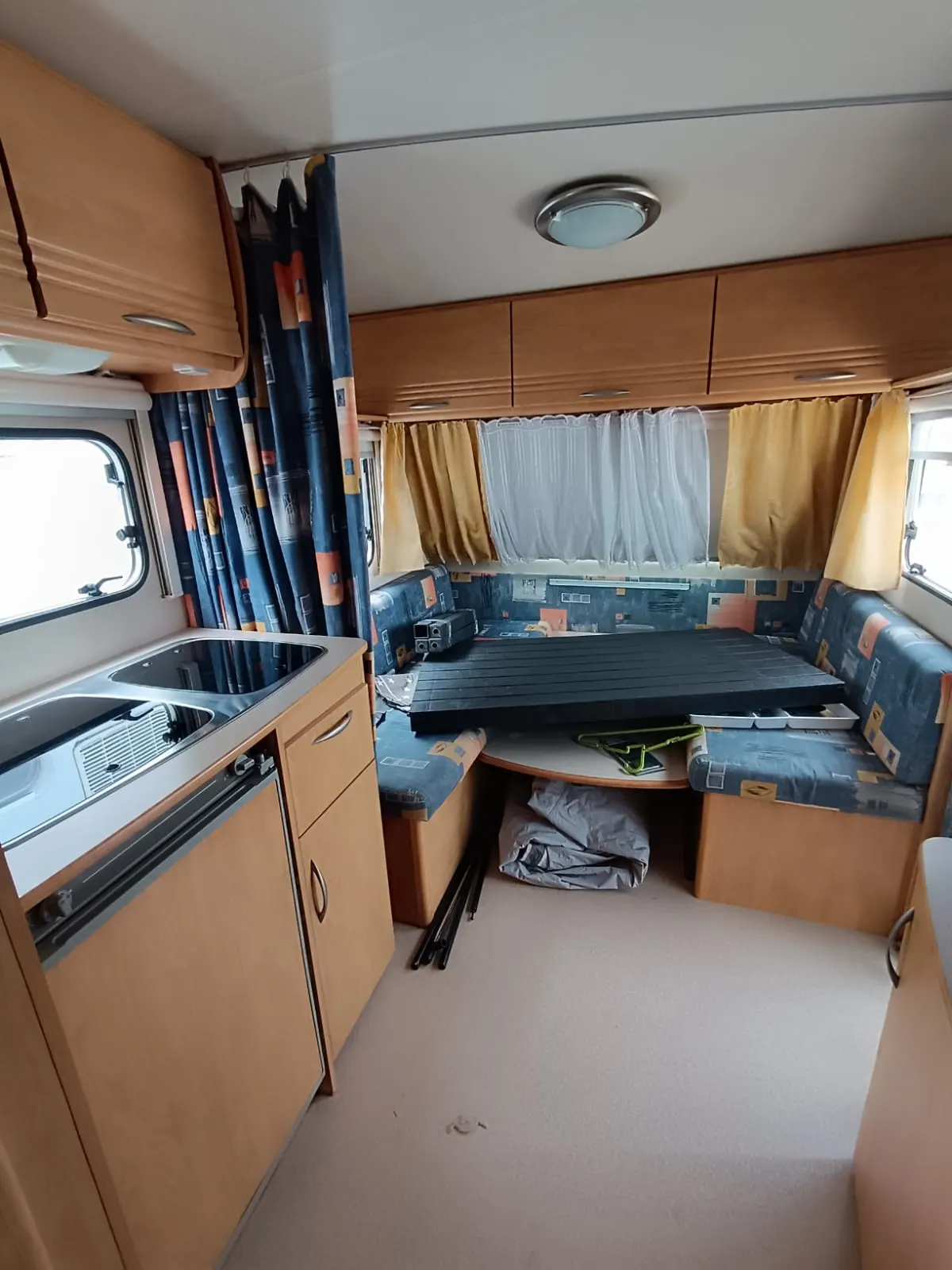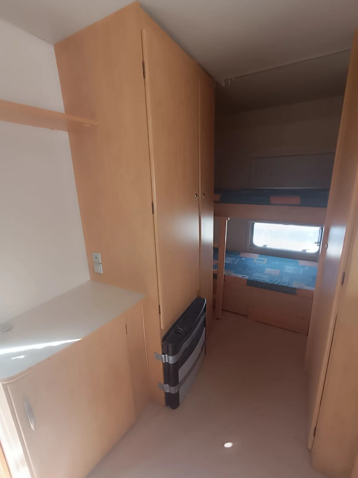 Se alquila caravana de 4 plazas con toldo, suelo, mesa y sillas, cocina y nevera de exterior, menaje de cocina, utensilios de limpieza y cable conexión 220v.
