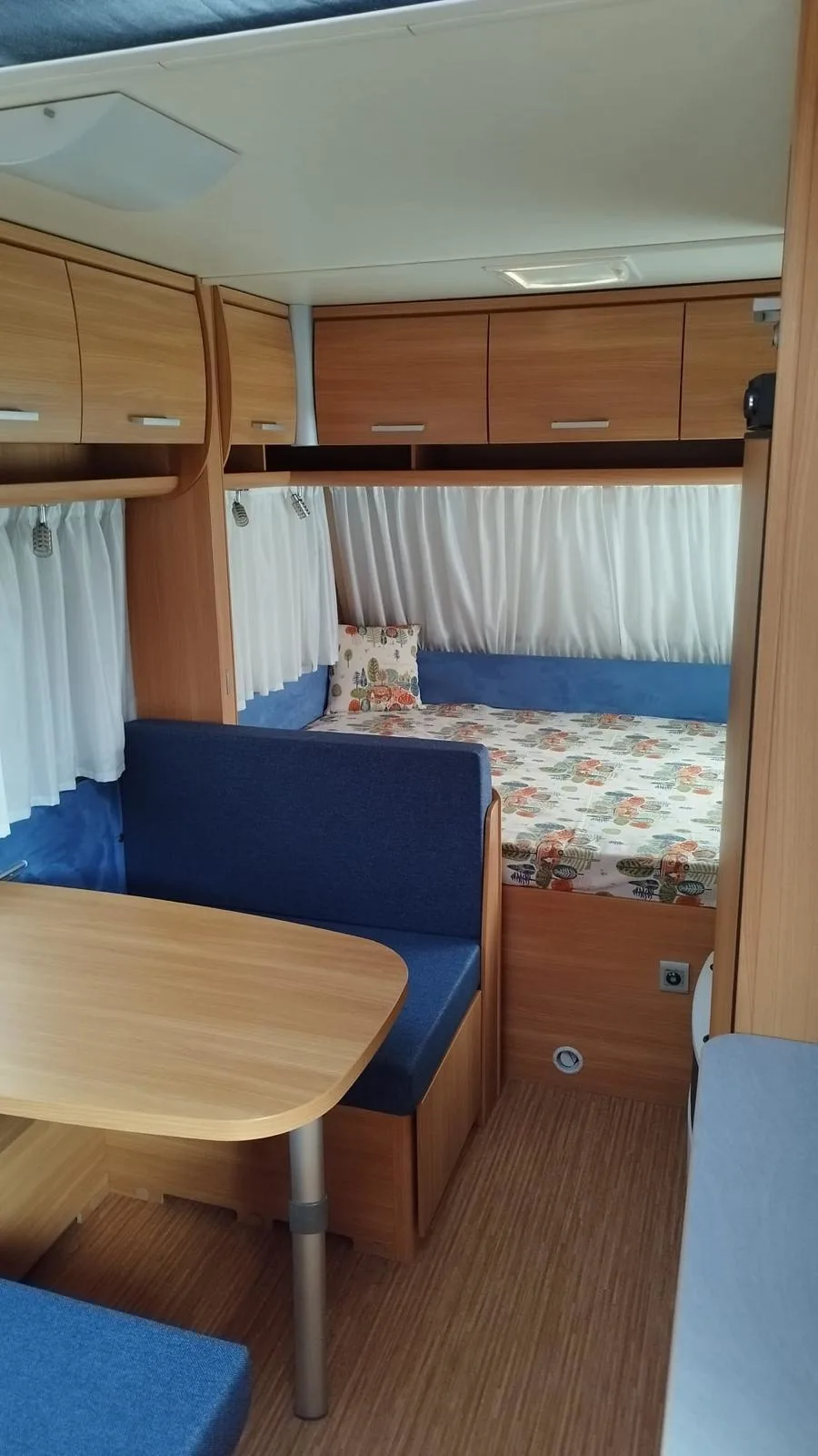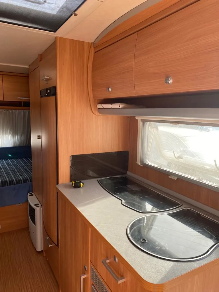 Se alquila caravana de 3 ambientes con toldo, suelo, mesa y sillas, cocina y nevera de exterior, menaje de cocina, utensilios de limpieza y cable conexión 220v.