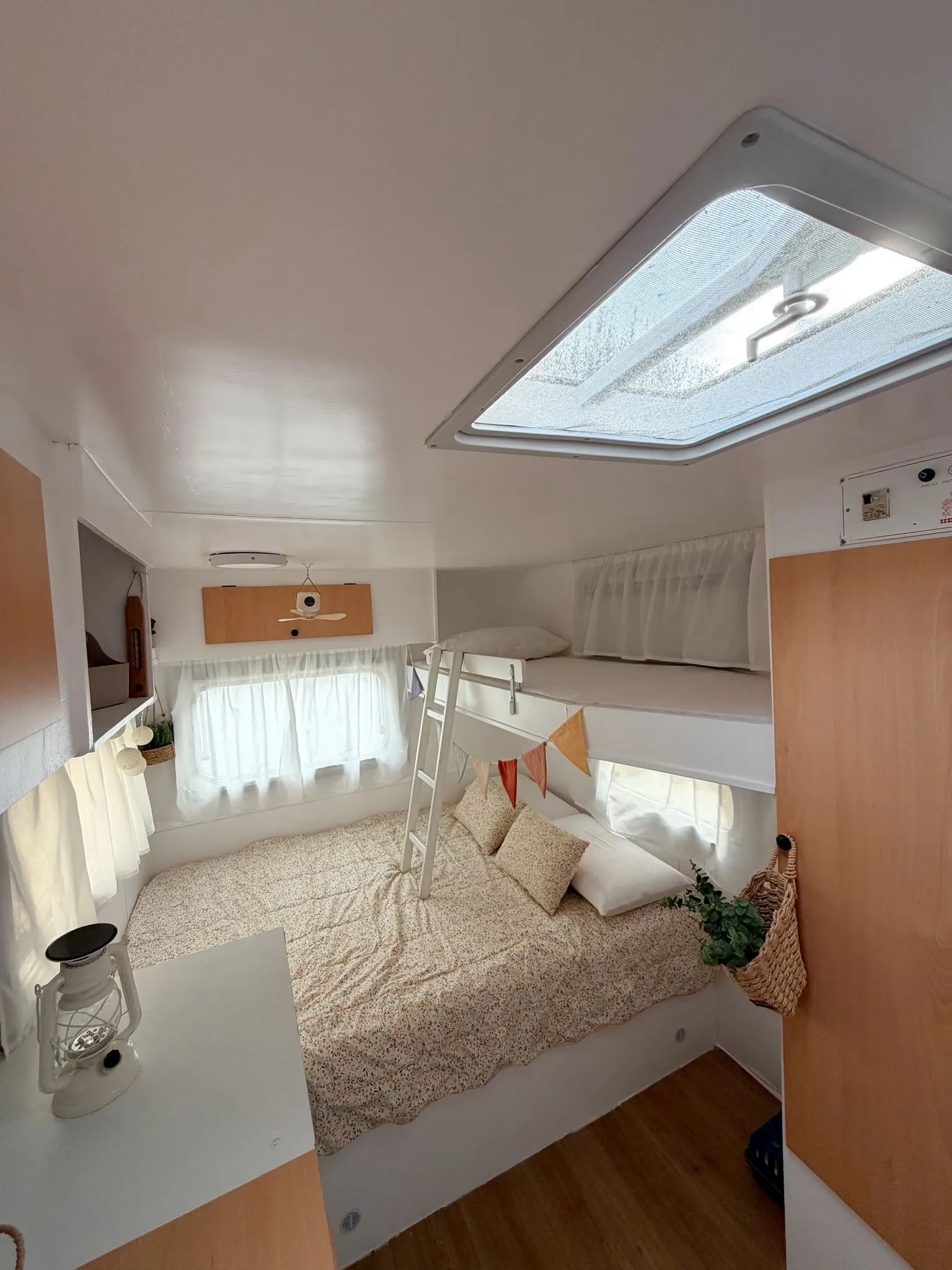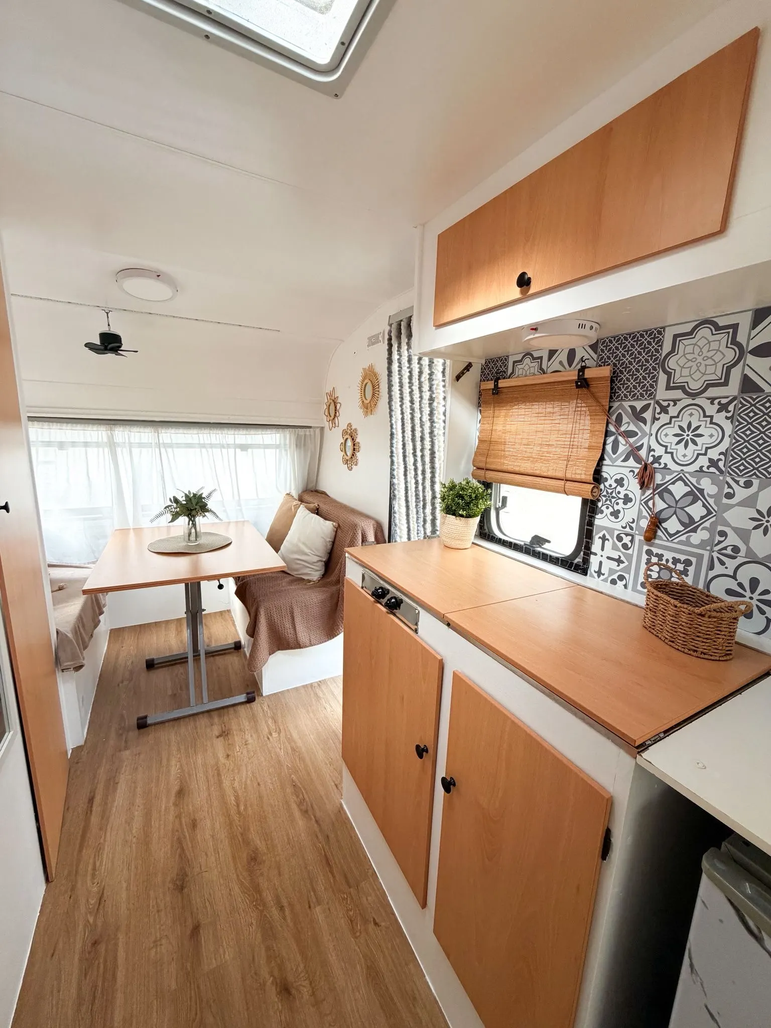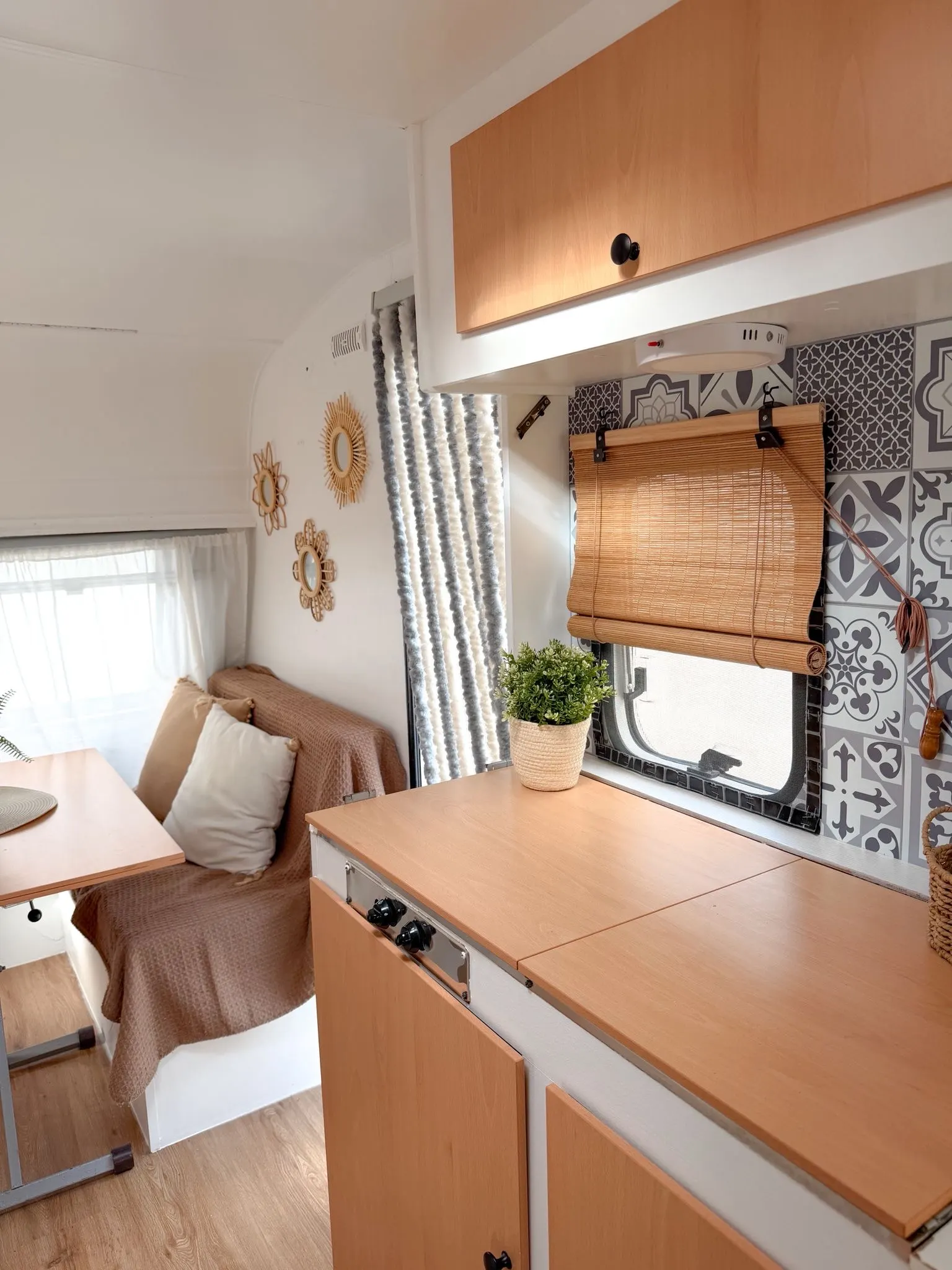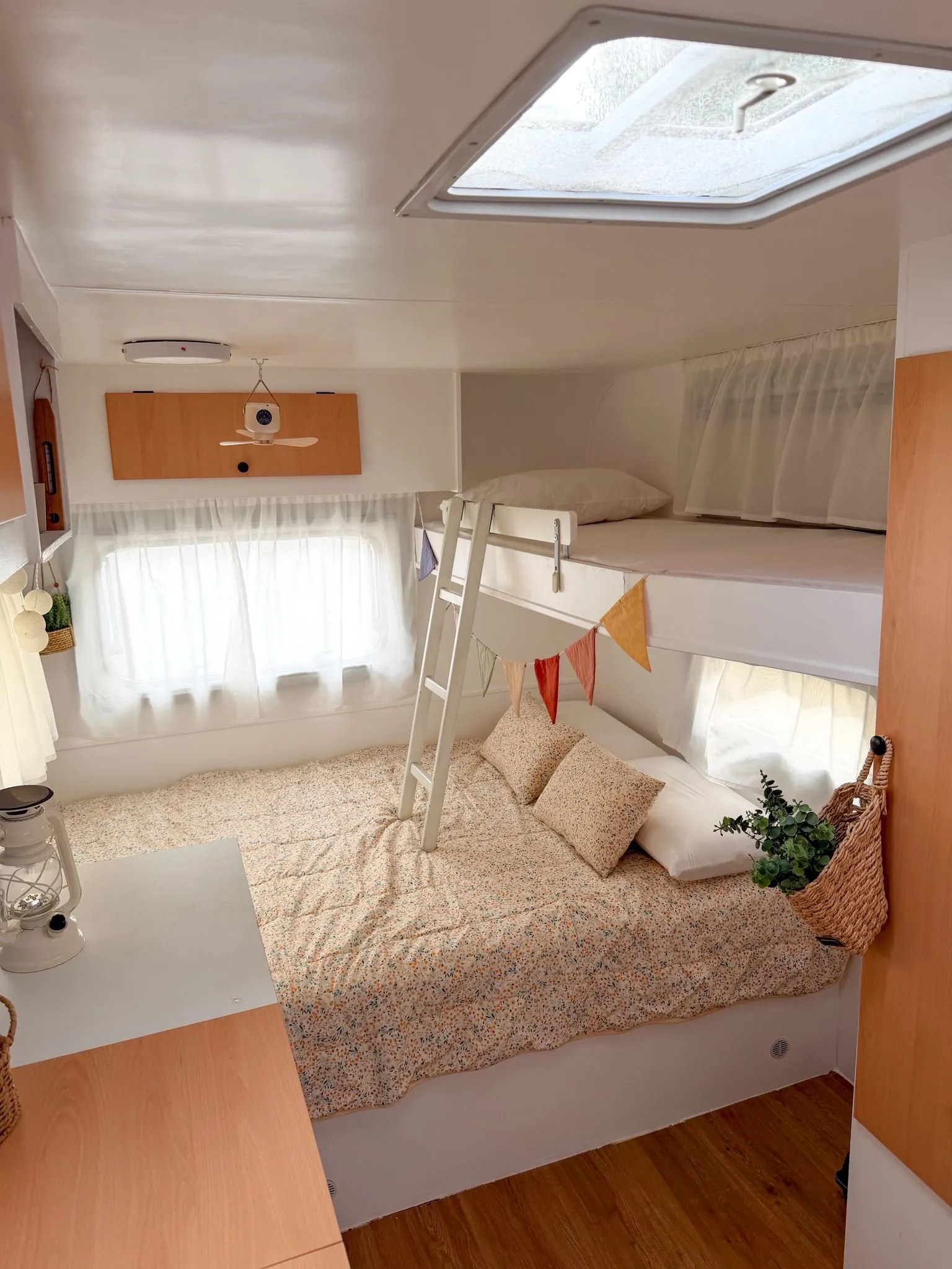 Descubre la libertad de viajar con estilo en esta preciosa caravana, completamente renovada y decorada con mimo para ofrecerte una experiencia cálida y acogedora. Un alquiler perfecto para familias, parejas o aventureros que buscan disfrutar de la naturaleza sin renunciar a la comodidad.